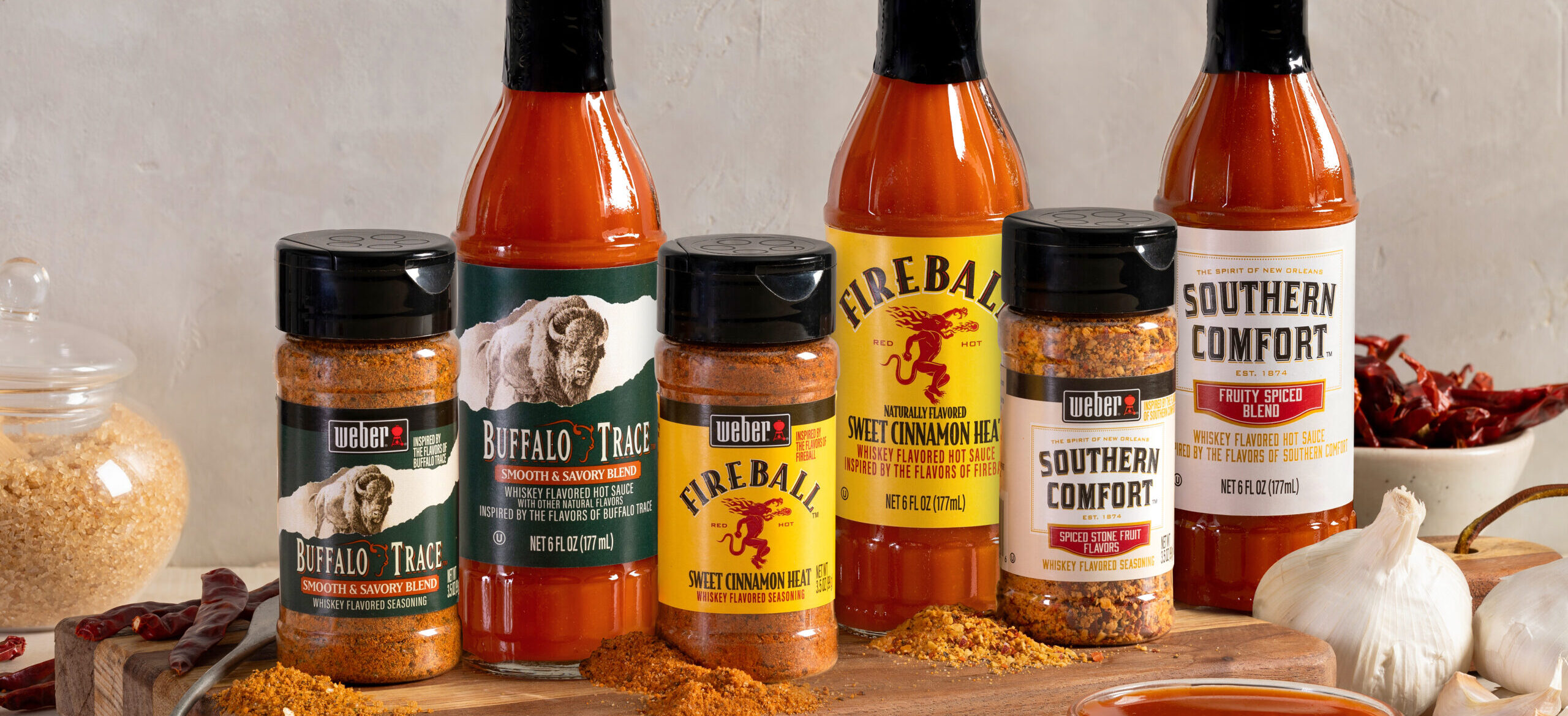 Weber-Sazerac combines premium whiskey flavors with expert grilling products. Infused with Buffalo Trace™️, Fireball™️, and Southern Comfort™️, these sauces and seasonings add bold, unforgettable flavors to any dish—ideal for backyard barbecues or weeknight dinners.